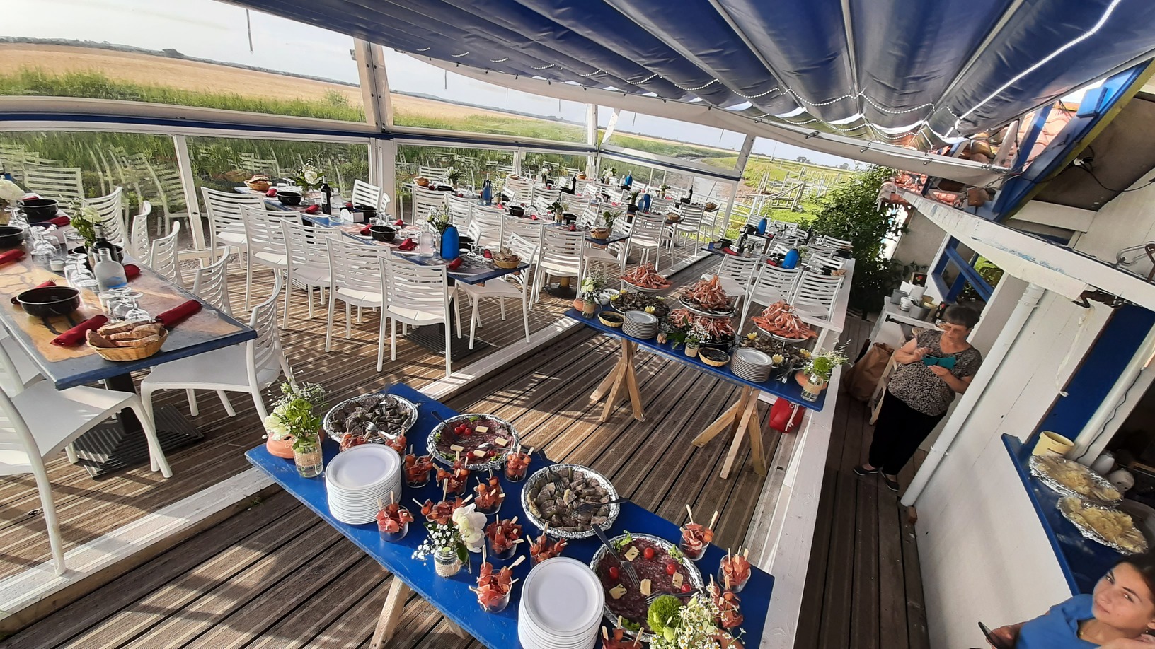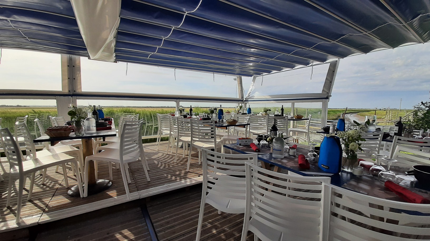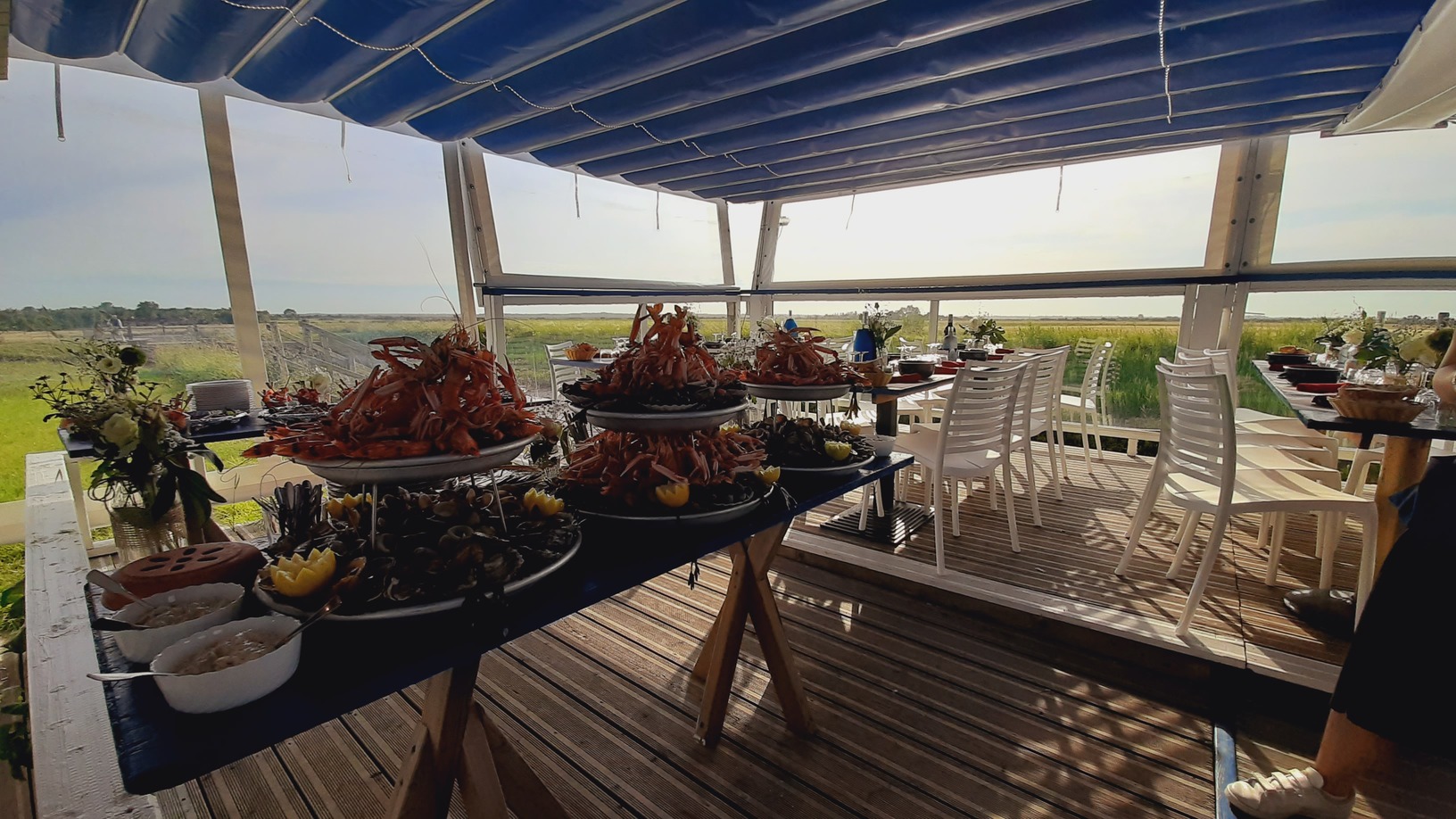 Passer une soirée en bord de chenal, c’est bien agréable. Le cadre, la terrasse avec vue sur l’estuaire de la Garonne, le coucher de soleil : quel bonheur ! De plus, l’assiette est bien garnie grâce aux bons soins de votre hôtesse Sophie. Et le soir, le restaurant se transforme en lieu d’excellence pour de délicieux moments sociaux.